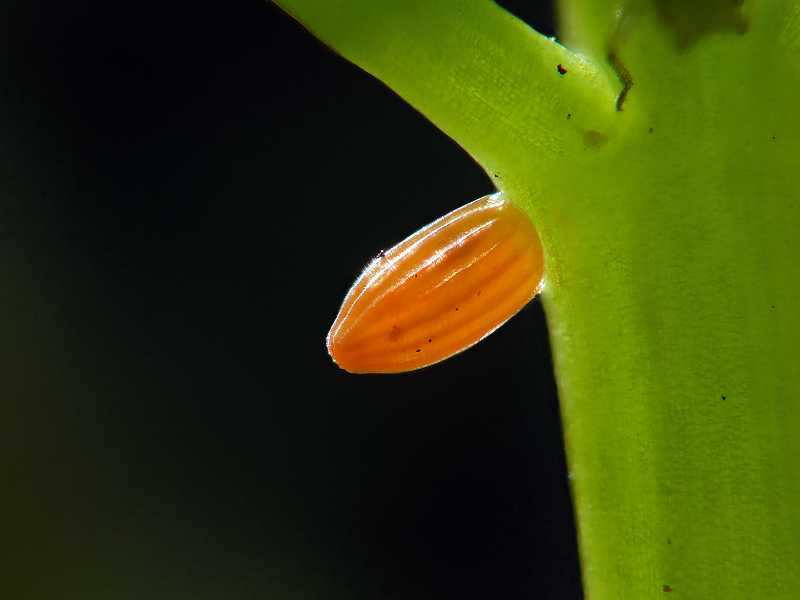 An egg at the base of a flower stem of Cuckooflower