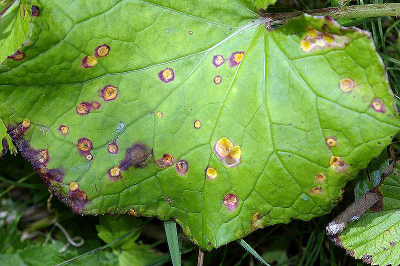 Fungal spots on Colt's-foot leaf