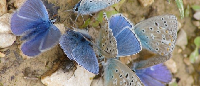 Blue Butterflies on Dung